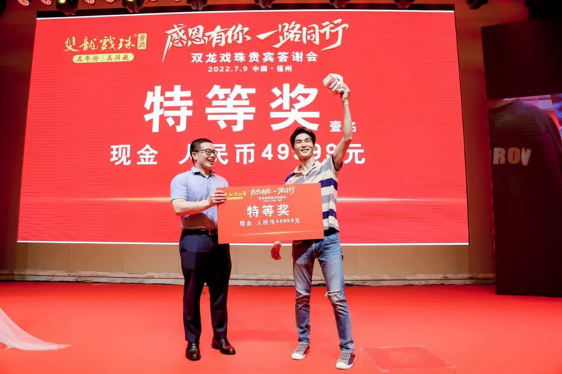 雙龍戲珠酒業(yè)總經(jīng)理黃盛堯在致辭中說(shuō)道,6月以來(lái),我們接連組織了多場(chǎng)回饋廣大消費者的雙龍戲珠貴賓答謝會(huì ),多地聯(lián)動(dòng),品牌熱議;雙龍戲珠的發(fā)展離不開(kāi)大家的支持,發(fā)展的成果也將與大家共享。希望我們一路同行,共同譜寫(xiě)新的篇章!