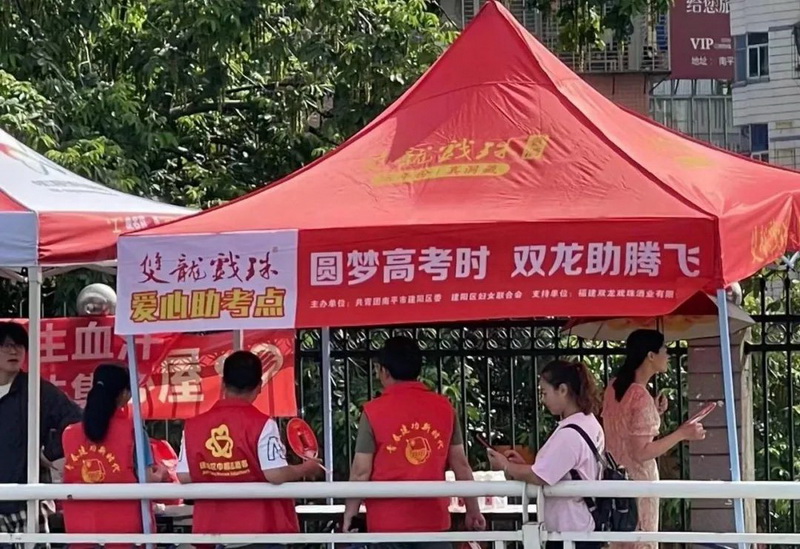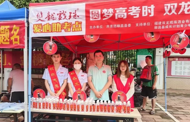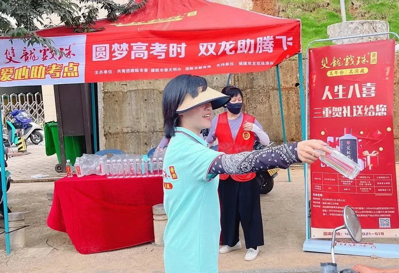雙龍戲珠酒業(yè)在南平市各(縣、市)考點(diǎn)共設立12個(gè)愛(ài)心助考點(diǎn),提供免費飲用水、扇子、防暑用品等物資,供考生和家長(cháng)免費領(lǐng)取。通過(guò)細致熱情的服務(wù),舒緩考生、家長(cháng)緊張的心情,用行動(dòng)詮釋“愛(ài)心助考”,為考生加油。