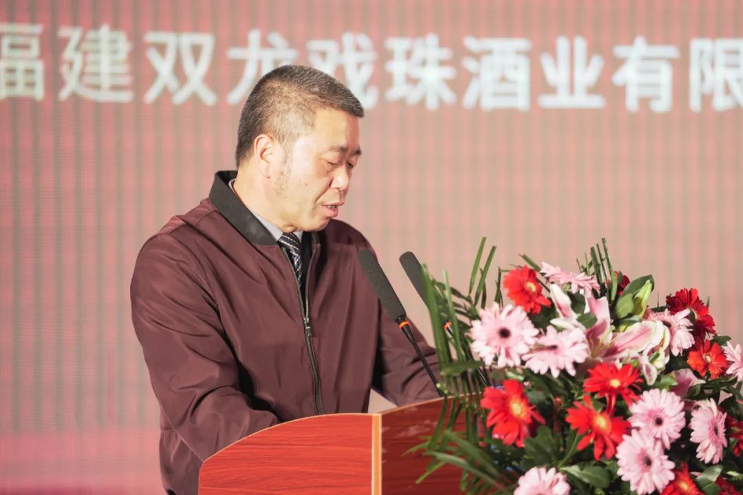 延平區龍棲貿易有限公司總經(jīng)理潘建國在致辭中感謝大家的出席,他表示,雙龍戲珠酒業(yè)不僅是出色的白酒生產(chǎn)商,更是一個(gè)優(yōu)秀的合作伙伴,好產(chǎn)品好品質(zhì)是經(jīng)銷(xiāo)商的底氣支撐和信心保證。