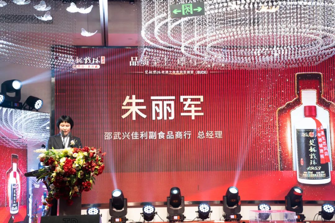 邵武市興佳利副食品商行總經(jīng)理朱麗軍在致辭中感謝大家的出席,她表示,雙龍戲珠酒業(yè)不僅是出色的白酒生產(chǎn)商,更是一個(gè)優(yōu)秀的合作伙伴,是經(jīng)銷(xiāo)商的堅強后盾。