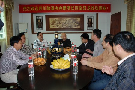 2010年5月22日,四川省釀酒研究所副所長(cháng)、總工程師、國家白酒專(zhuān)家楊官榮在福建省輕工業(yè)聯(lián)合會(huì )副會(huì )長(cháng)吳經(jīng)奮,市委常委副市長(cháng)夏邵平的陪同下到我公司交流指導工作。楊所長(cháng)對雙龍戲珠多糧型白酒的釀造工藝給予了肯定,并對提升白酒品質(zhì)提出了寶貴意見(jiàn)。