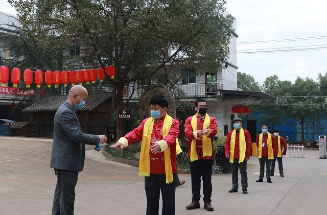 參加祭祀和封壇人員一一面戴口罩,噴灑酒精消毒后間隔一米以上距離入場(chǎng)。場(chǎng)面上沒(méi)有了往年的喧天鑼鼓,有的只是釀酒人莊重的步伐。他們手捧釀酒糧食,在總經(jīng)理黃盛堯帶領(lǐng)下宣讀祭文,緊接著(zhù)在主祭人黃德鋒董事長(cháng)的帶領(lǐng)下列隊進(jìn)入酒坊進(jìn)行祭拜,祈求抗疫早日勝利、保佑國泰民安、五谷豐登,來(lái)年釀出好酒。