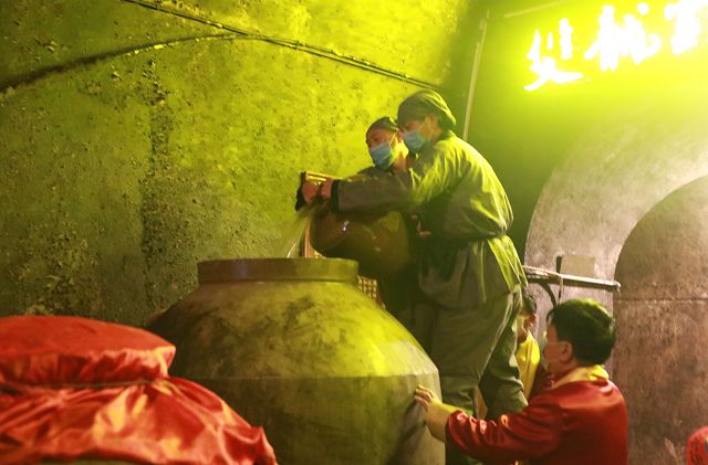 封壇儀式上,董事長(cháng)黃德鋒,總經(jīng)理黃盛堯帶領(lǐng)雙龍戲珠釀酒人護送今年的第一鍋春釀酒緩緩步入雙龍洞,分別將兩壇50斤的春釀酒倒入東南第一大壇——濃香母壇和醬香母壇。母壇總容量3000斤,每年二月二加入50斤第一鍋春釀酒,母壇加滿(mǎn)需要60年,今年已經(jīng)是第十九年了,加滿(mǎn)后每年二月二打出50斤給來(lái)賓品嘗,再加入50斤進(jìn)去,以此循環(huán),讓這兩壇酒將來(lái)成為雙龍戲珠打造百年酒企的實(shí)物見(jiàn)證!